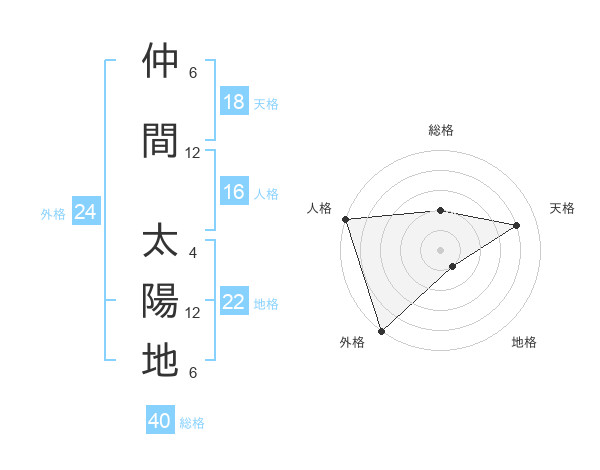 仲間 太陽地さんを姓名の画数から五運を鑑定
