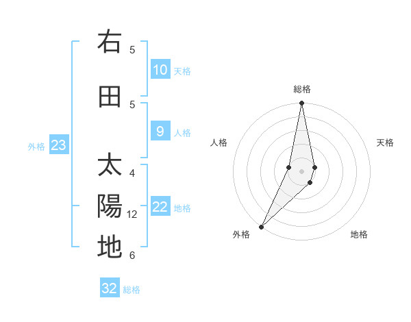 右田 太陽地さんを姓名の画数から五運を鑑定