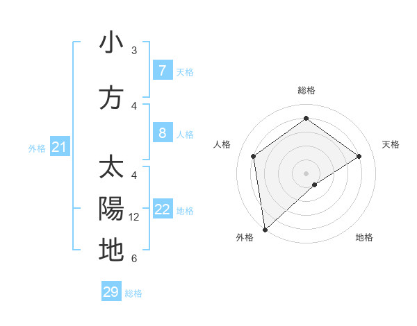 小方 太陽地さんを姓名の画数から五運を鑑定
