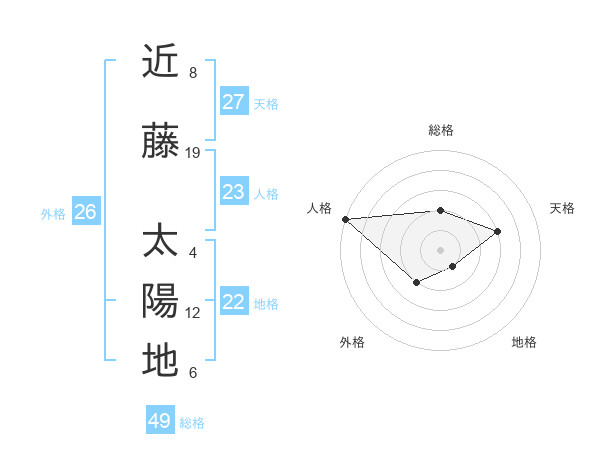 近藤 太陽地さんを姓名の画数から五運を鑑定
