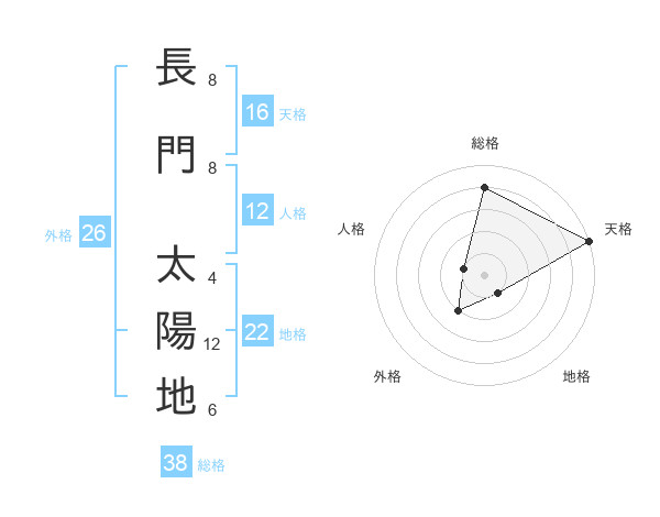 長門 太陽地さんの総格は38画の4点