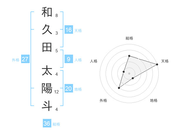 和久田 太陽斗さんを姓名の画数から五運を鑑定