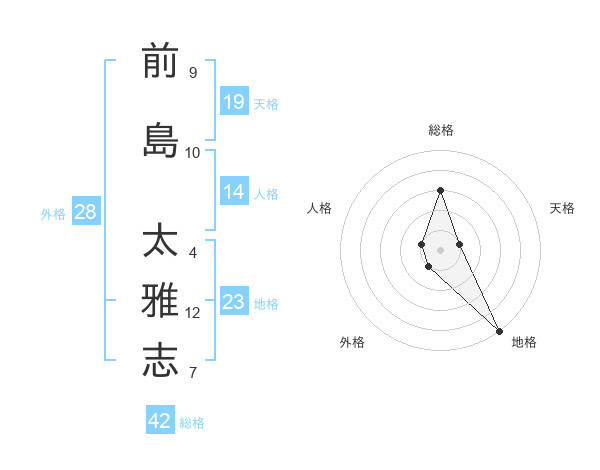 前島 太雅志さんを姓名の画数から五運を鑑定