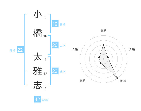 小橋 太雅志さんを姓名の画数から五運を鑑定
