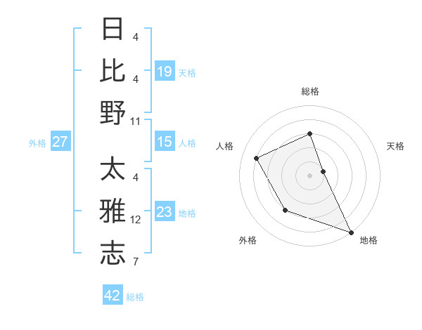 日比野 太雅志さんを姓名の画数から五運を鑑定