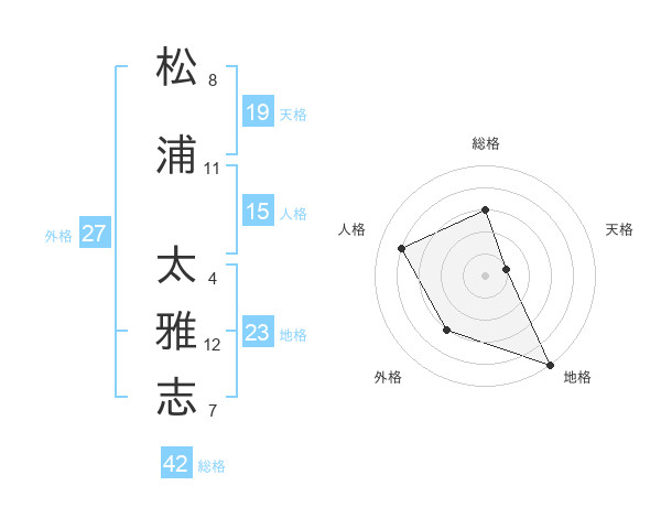 松浦 太雅志さんの総格は42画の3点