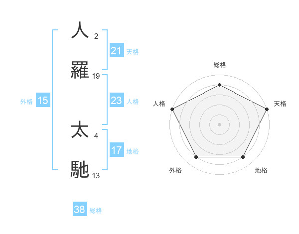 人羅 太馳さんの総格は38画の4点!