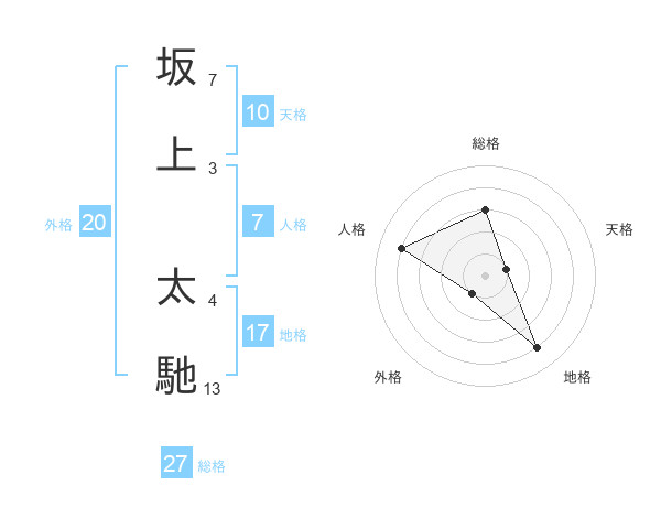 坂上 太馳さんを姓名の画数から五運を鑑定