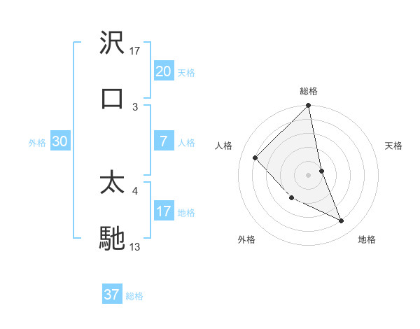 沢口 太馳さんを姓名の画数から五運を鑑定