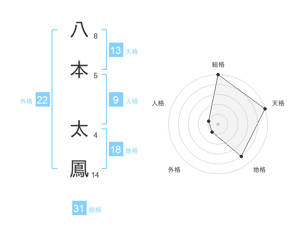 八本 太鳳さんを姓名の画数から五運を鑑定