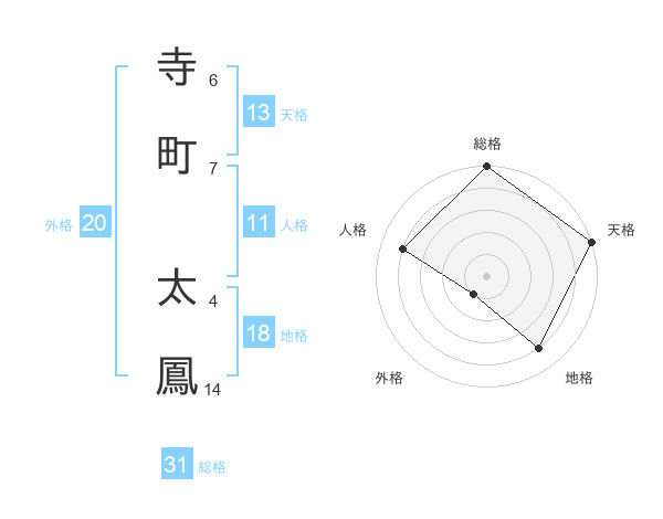 寺町 太鳳さんの総格は31画の5点!