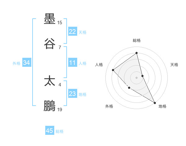墨谷 太鵬さんの総格は45画の4点!