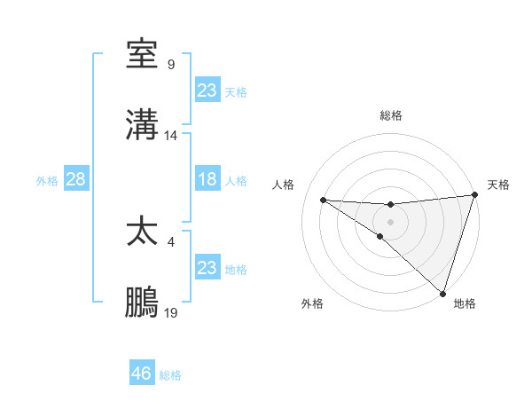 室溝 太鵬さんを姓名の画数から五運を鑑定