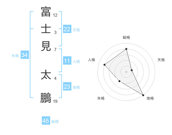 富士見 太鵬さんの総格は45画の4点!