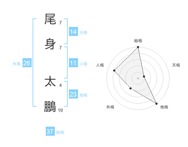 尾身 太鵬さんの総格は37画の5点!
