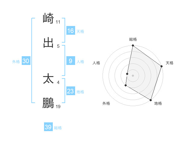 崎出 太鵬さんの総格は39画の5点!