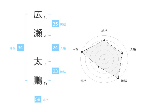 広瀬 太鵬さんの総格は58画の4点!