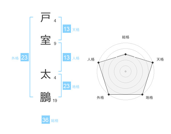 戸室 太鵬さんの外格は23画の5点!