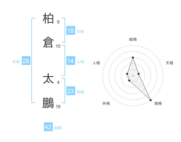 柏倉 太鵬さんの地格は23画の5点!