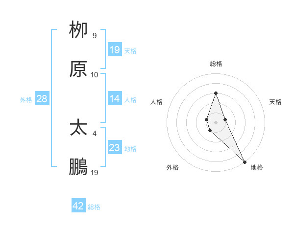 栁原 太鵬さんを姓名の画数から五運を鑑定