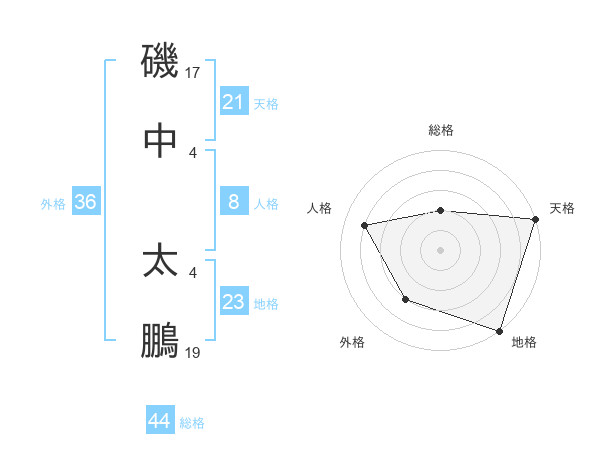 磯中 太鵬さんの地格は23画の5点!