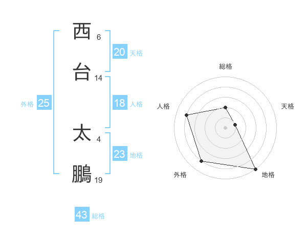 西台 太鵬さんを姓名の画数から五運を鑑定
