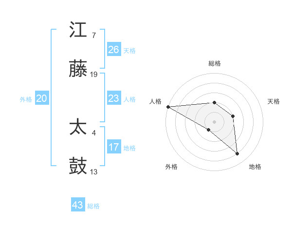 江藤 太鼓さんを姓名の画数から五運を鑑定