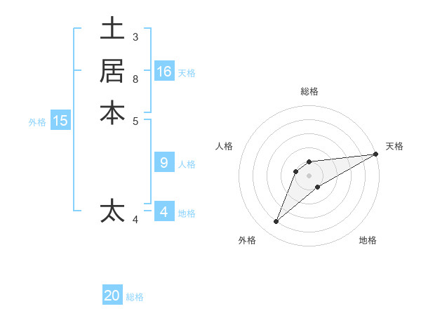 土居本 太さんの天格は16画の5点!
