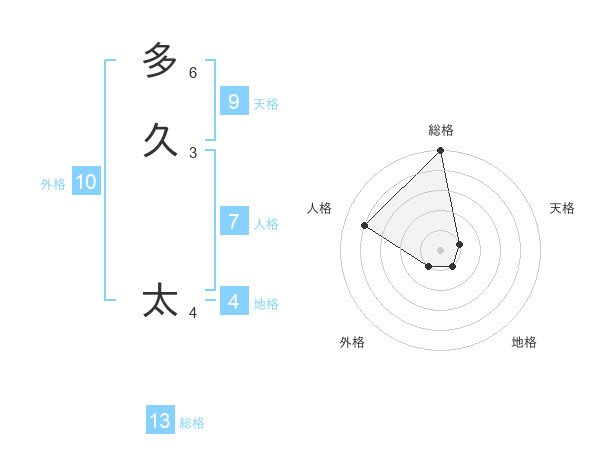 多久 太さんの総格は13画の5点!
