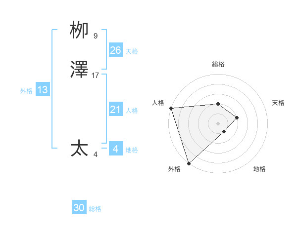 栁澤 太さんの外格は13画の5点!
