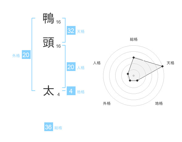 鴨頭 太さんを姓名の画数から五運を鑑定