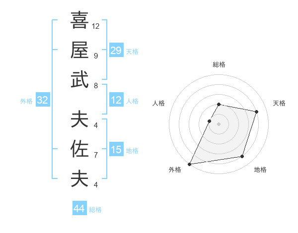 喜屋武 夫佐夫さんの天格は29画の4点!