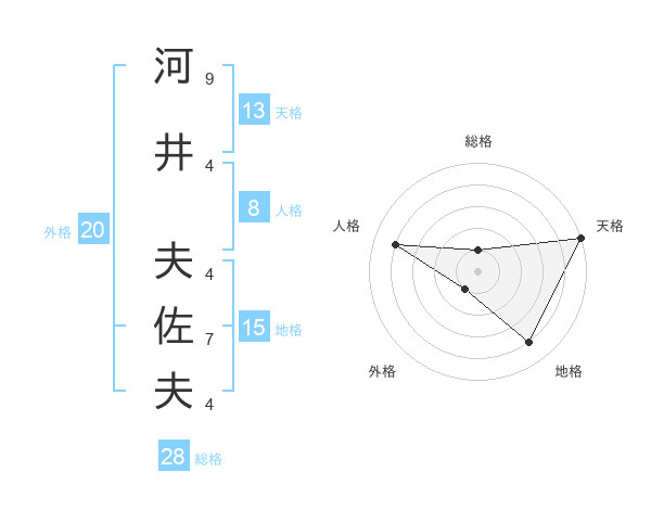 河井 夫佐夫さんを姓名の画数から五運を鑑定