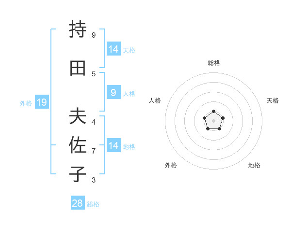 持田 夫佐子さんの天格は14画の1点!
