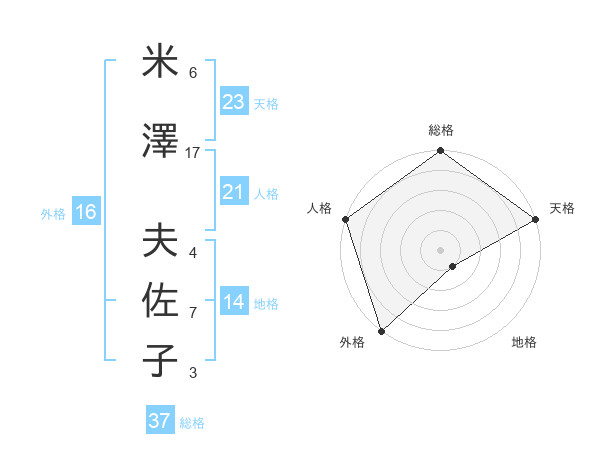 米澤 夫佐子さんの総格は37画の5点!