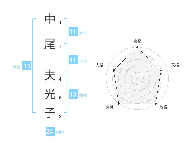 中尾 夫光子さんを姓名の画数から五運を鑑定