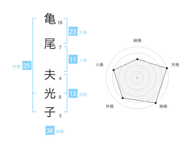 亀尾 夫光子さんの天格は23画の5点!