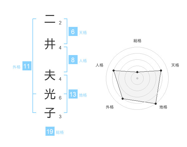二井 夫光子さんの総格は19画の1点!
