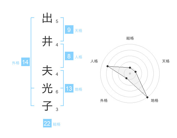 出井 夫光子さんを姓名の画数から五運を鑑定