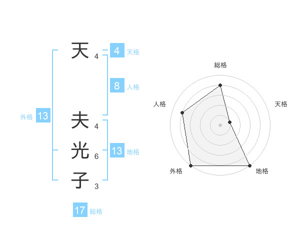 天 夫光子さんの外格は13画の5点!