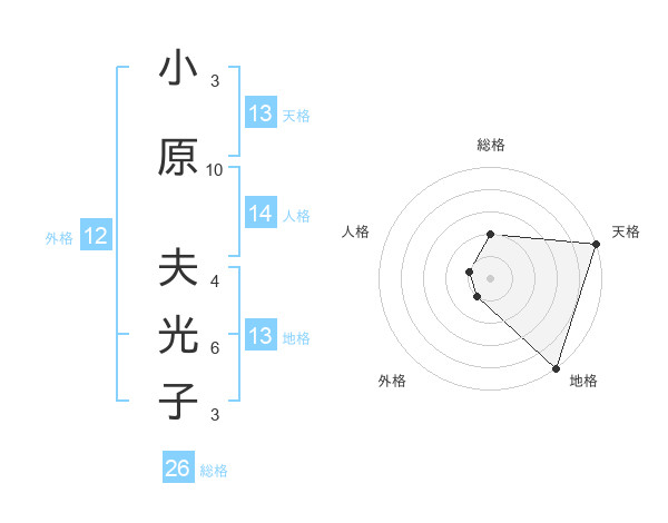 小原 夫光子さんの天格は13画の5点!