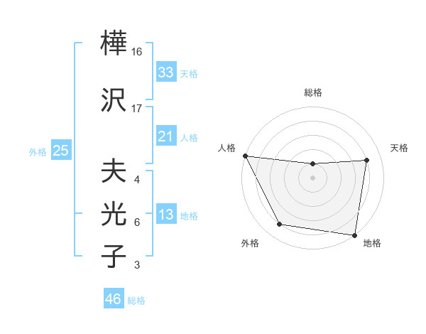 樺沢 夫光子さんの天格は33画の4点!