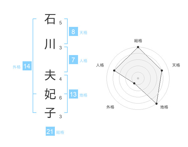 石川 夫妃子さんを姓名の画数から五運を鑑定