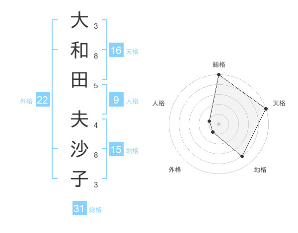 大和田 夫沙子さんを姓名の画数から五運を鑑定