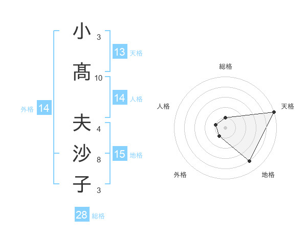 小髙 夫沙子さんを姓名の画数から五運を鑑定