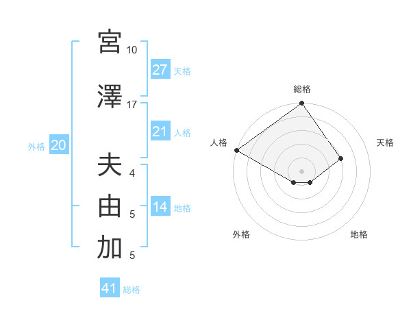 宮澤 夫由加さんを姓名の画数から五運を鑑定