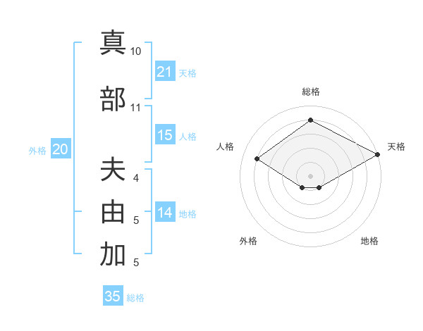 真部 夫由加さんを姓名の画数から五運を鑑定
