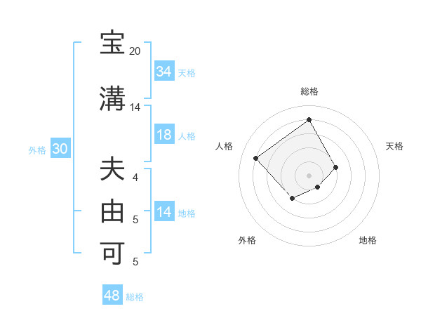 宝溝 夫由可さんを姓名の画数から五運を鑑定