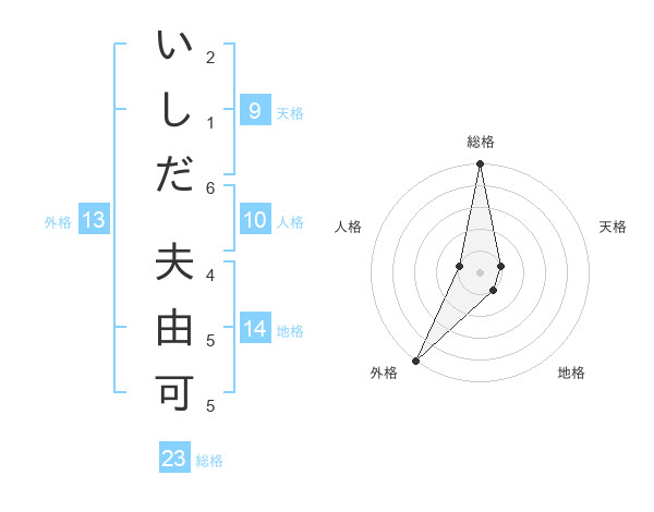 いしだ 夫由可さんを姓名の画数から五運を鑑定