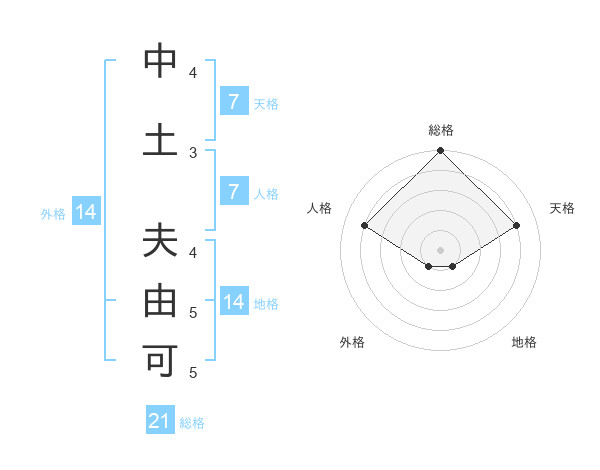 中土 夫由可さんを姓名の画数から五運を鑑定